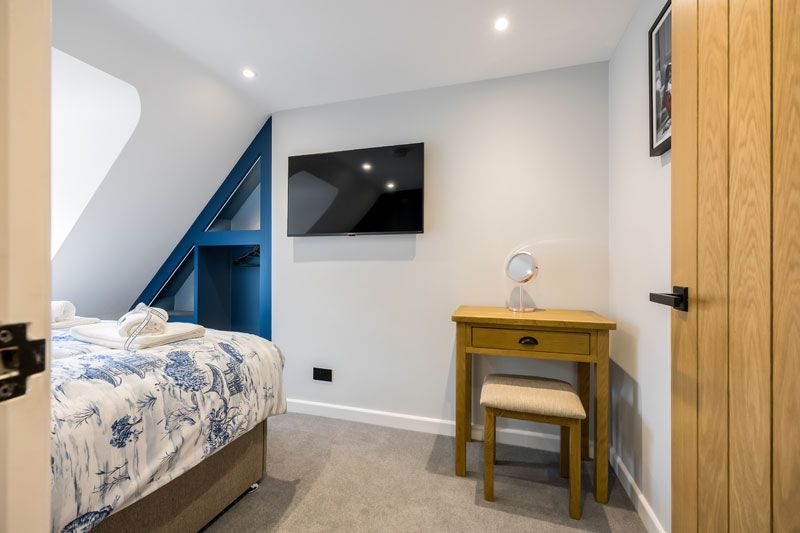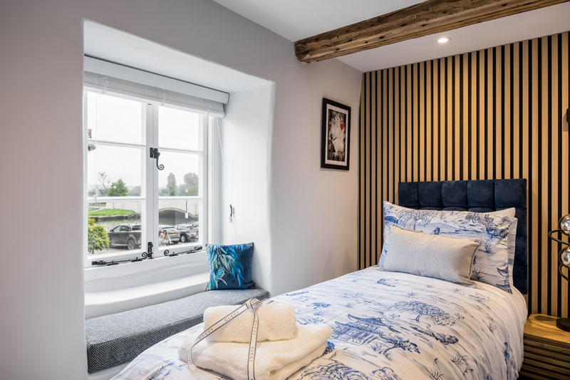 Inside, the ground floor is open-plan with a stylish kitchen, dining and lounge area. Upstairs, you’ll find a feature bathroom with claw-foot bath and separate shower, plus two comfortable bedrooms, 1 twin and 1 double. The top floor offers a twin room with ensuite and a further double bedroom, again with wonderful waterside views.